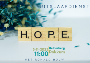 Deze keer heeft de uitslaapdienst als thema: Hoop. We lezen het verhaal van Elia. Hij dient God en moet vluchten voor de vijand. Hij wil opgeven, maar God helpt hem overeind. Soms lijkt het als alles verloren lijkt maar er is toch altijd hoop! In deze dienst zal er ook aandacht zijn voor de stichting Baraka uit Kenia. Een organisatie die hoop biedt aan jongeren uit de sloppenwijken van Nairobi. Yde en Karina Tjepkema zijn daar afgelopen zomer geweest en gaan daar over vertellen. | ||
